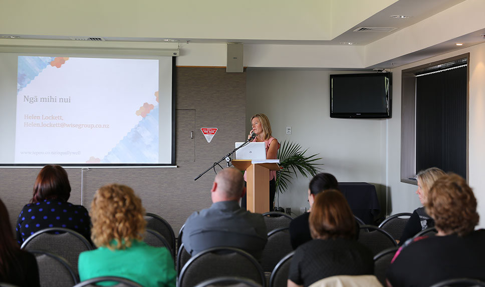Helen encouraged attendees to use Equally Well resources and profile what they’re doing so others learn about changes being made. She also stressed the importance of evaluating the effectiveness of changes so a body of evidence can be built up about what works in New Zealand.